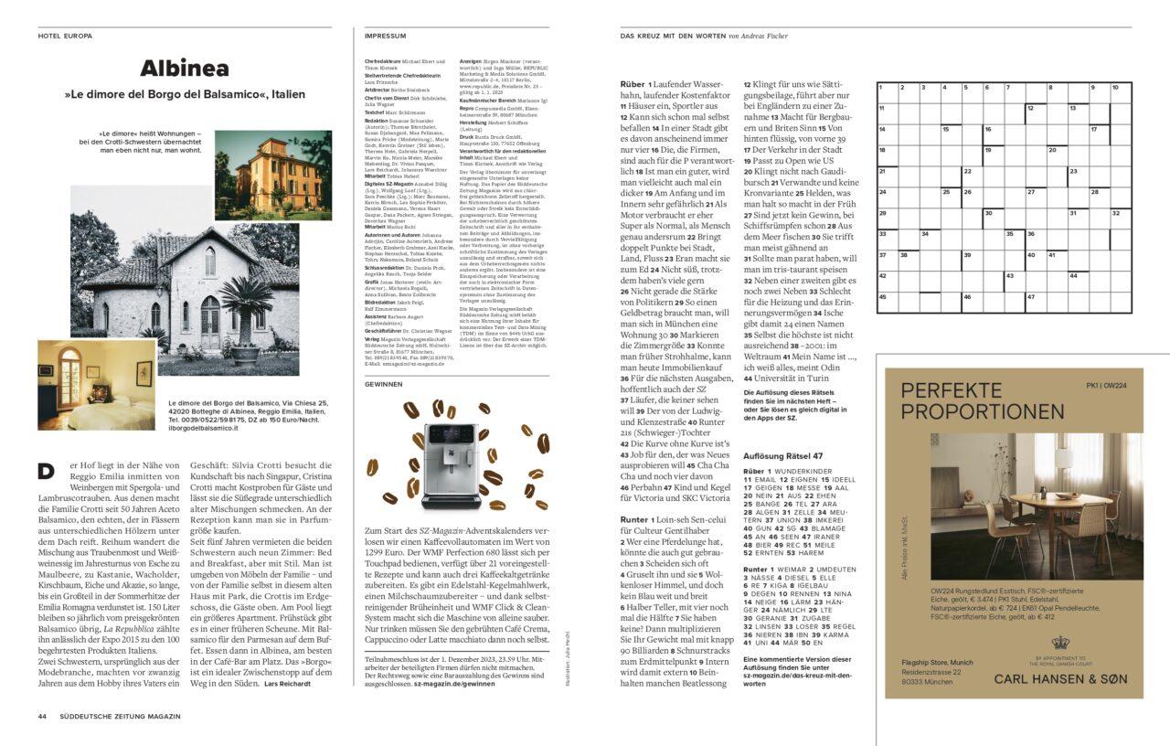 Il Borgo del Balsamico, è apparso anche nella rivista SZ-Magazin, il magazine del quotidiano tedesco Süddeutsche Zeitung.