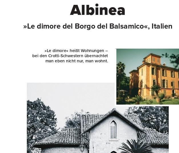 “Le sorelle Silvia e Cristina Crotti hanno creato un piccolo paradiso tra i vigneti del Nord Italia: Le dimore del Borgo del Balsamico vicino a Reggio Emilia non ospita solo camere eleganti, ma è anche il luogo di produzione di un aceto balsamico pluripremiato.”