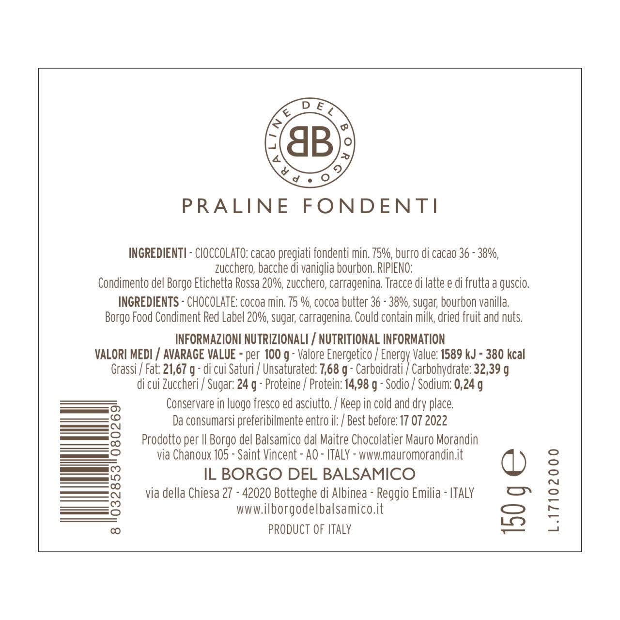 Praline Cioccolato fondente e condimento del borgo etichetta rossa